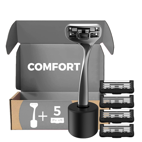 ماكينة حلاقة للرجال, ماكينة حلاقة رجالية مزودة بستة شفرات للحلاقة الرطبة متوفرة بمقبض معدني كامل