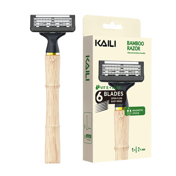 علامة خاصة صندوق هدايا معبأ شفرة حلاقة من الخيزران مع 6 شفرات خرطوشة قابلة للتغيير شفرة حلاقة صديقة للبيئة طبيعية