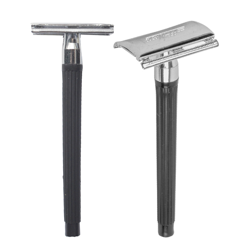 Maquinilla de afeitar con mango de Metal, hoja de doble filo, nueva